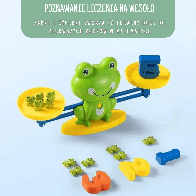 Poziom łatwy – dziecko uczy się rozpoznawać cyfry i dopasowywać liczbe żabek